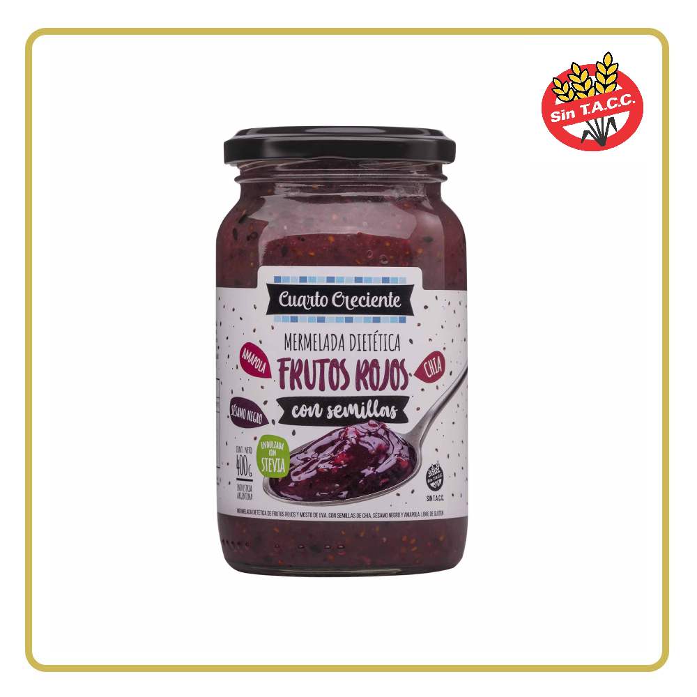 MERMELADA DIETETICA CON SEMILLA SABOR FRUTOS ROJOS 400gr CUARTO CRECIENTE (LIBRE DE GLÚTEN)